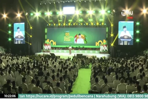 Sumber : Antara. Puncak peringatan Hari Lahir Ke-100 Nahdlatul Ulama (NU) digelar di Istora Senayan, Jakarta, Sabtu (31/1/2026). Tema Harlah Ke-100 NU tahun ini adalah Mengawal Indonesia Merdeka Menuju Peradaban Mulia. Foto: Ist