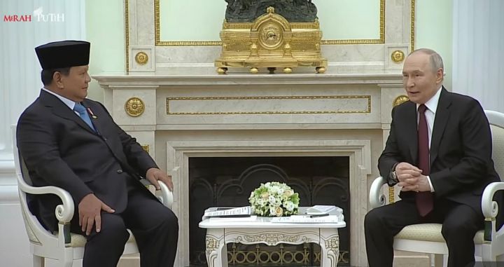 Sumber : Metro Tv. Presiden Prabowo Subianto melakukan pertemuan bilateral dengan Presiden Rusia Vladimir Putin. Foto: BPMI Setpres.